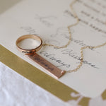 METAL OPTIONS: Necklaces are made of sterling silver or gold-fill materials. Gold-fill means that there is a bonded layer of real gold that is 100x thicker than a piece of jewelry that is gold-plated, meaning your piece will have a long life with no chipping or tarnishing as long as it is well kept. Please see our Care Instructions page for more information on keeping your pieces in their best condition.